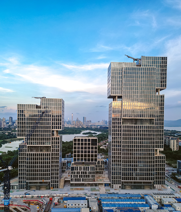 建筑高度:A塔156m(32層),B塔107m(21層) 幕墻面積:7.2萬m2 項目設計:德國gmp建筑事務所 幕墻類型:4米*10米超大單元式玻璃幕墻、框架幕墻系統等