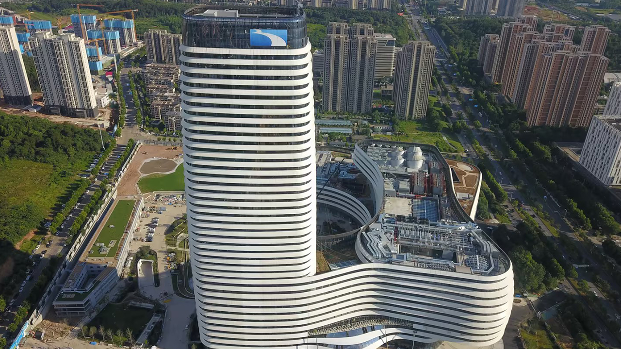 建筑高度:204m 幕墻面積:11.96萬㎡ 項目設(shè)計:華東建筑設(shè)計研究院有限公司 幕墻類型:單元式玻璃幕墻等
