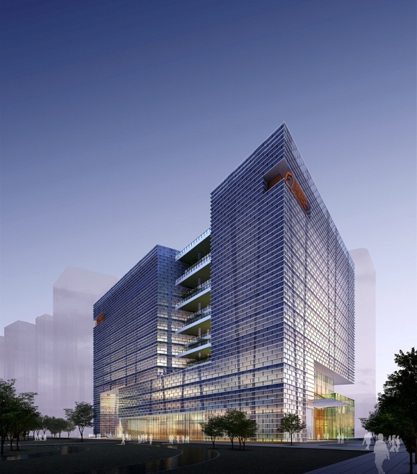 成都阿里巴巴西部基地項目位于成都市高新區益州大道、天府四街、英華南路交匯處,總建筑面積為20萬平方米,幕墻面積為6.67萬平方米,建筑高度為70.6米。主要采用單元式幕墻、框架式幕墻、玻璃幕墻、石材幕墻等系統。