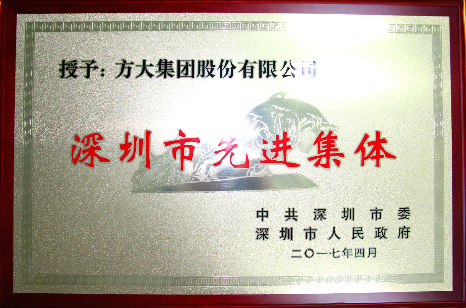 2017年“深圳市先進集體”是深圳市委、市政府為表彰先進,進一步激勵和鼓舞全市廣大職工群眾為加快建設現代化國際化創新型城市和國際科技、產業創新中心作出新的更大的貢獻而組織評選的。“深圳市先進集體”的評定須經逐級推薦、評委會初審、網絡投票、市委市政府審定、正式候選名單公示等一系列嚴格程序,充分保證了評選結果的公平、公正性。方大集團脫穎而出,榮獲“深圳市先進集體”稱號,成為深圳市南山區僅有的兩個入選企業單位之一,彰顯了方大集團作為行業領導者在創造經濟社會效益、組織工會工作、承擔社會責任等方面為社會各界做出的表率作用。
