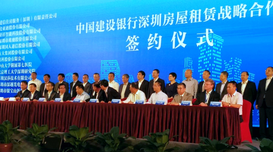 【新華社深圳11月3日電】 3日,建設(shè)銀行深圳分行與招商、華潤(rùn)、萬(wàn)科、恒大、中海、碧桂園、星河等11家房地產(chǎn)公司,以及比亞迪、方大集團(tuán)、研祥智能、兆馳等11家企事業(yè)單位舉行住房租賃戰(zhàn)略合作簽約儀式,推出5000余套包括“CCB建融家園”在內(nèi)的長(zhǎng)租房源,并發(fā)布個(gè)人住房租賃貸款產(chǎn)品,標(biāo)志著建設(shè)銀行正式進(jìn)軍深圳住房租賃市場(chǎng)。