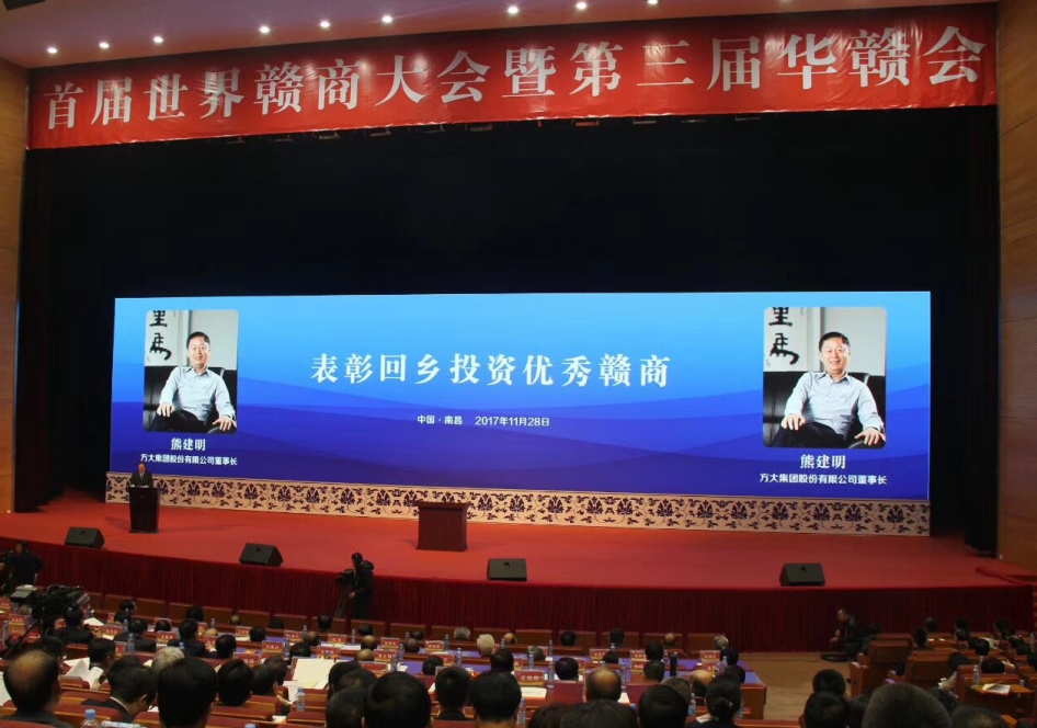 11月28日,首屆世界贛商大會(huì)暨第三屆華贛會(huì)在江西省南昌市隆重舉行,方大集團(tuán)股份有限公司董事長(zhǎng)熊建明榮獲“首屆江西省回鄉(xiāng)投資優(yōu)秀贛商”稱號(hào)。全國(guó)人大常委會(huì)副委員長(zhǎng)、民建中央主席陳昌智、國(guó)務(wù)院僑務(wù)辦主任裘援平、江西省委書記鹿心社、江西省長(zhǎng)劉奇以及海內(nèi)外知名贛商代表、社科界贛籍知名人士等約1500人共同出席了開(kāi)幕式。