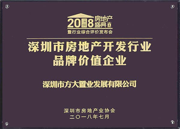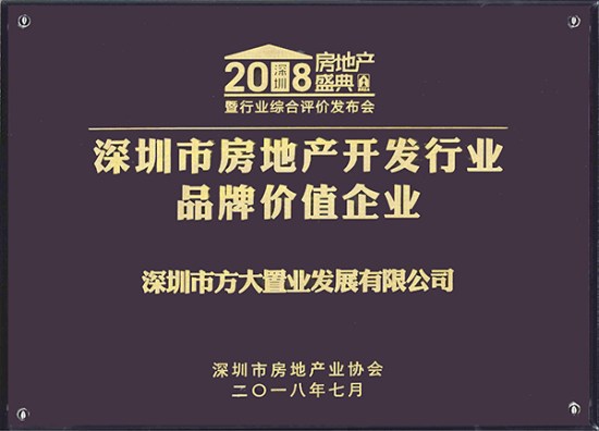 7月10日,第八屆深圳房地產(chǎn)盛典暨行業(yè)綜合評價(jià)發(fā)布會舉行,公布了2018綜合評價(jià)結(jié)果,方大置業(yè)公司獲評“深圳市房地產(chǎn)開發(fā)行業(yè)品牌價(jià)值企業(yè)”。