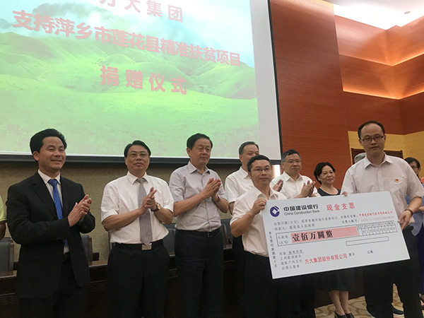 7月25日,方大集團向江西省萍鄉市蓮花縣捐款100萬元用于精準扶貧項目建設。