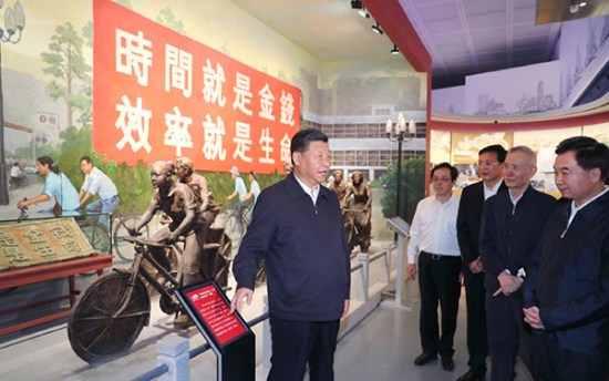 10月24日,中共中央總書記、國家主席、中央軍委主席習(xí)近平來到深圳市福田區(qū),在深圳市當(dāng)代藝術(shù)館與城市規(guī)劃展覽館參觀了“大潮起珠江——廣東改革開放40周年展覽”。隨后又前往深圳前海考察,參觀了深圳市萬科前海企業(yè)公館展覽廳。