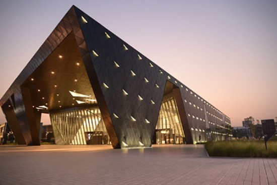 深圳市當(dāng)代藝術(shù)館與城市規(guī)劃展覽館坐落于深圳中心區(qū)中軸線上,是中心區(qū)最后一個大型公共文化建筑,總建筑面積約8萬平方米。作為推廣新銳藝術(shù)、展示城市的新地標(biāo),該建筑以柔和的空間造型和藝術(shù)形象引起了廣泛的關(guān)注。該項目采用了大量的三角形玻璃幕墻及三角形穿孔不銹鋼+玻璃的雙層幕墻,實現(xiàn)了外立面傾斜、扭曲和旋轉(zhuǎn)的曲面變化,在確保最佳的采光效果同時,兼顧了遮陽、亮化等功能性需要,極富想象力和生命力,但也對幕墻平整度、施工精細(xì)度等帶來極大的挑戰(zhàn)。方大建科的工匠們,克服了幕墻形式復(fù)雜、材料品種規(guī)格多、施工精度高等種種困難,打造了這座兼具美感和功能性的“表皮”。