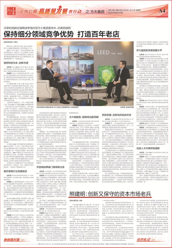 證券時(shí)報(bào)副總編輯成孝海對(duì)話方大集團(tuán)董事長(zhǎng)熊建明
