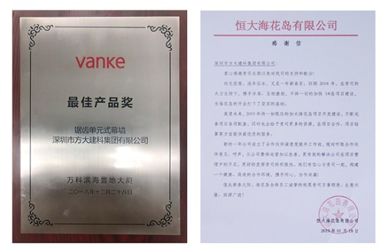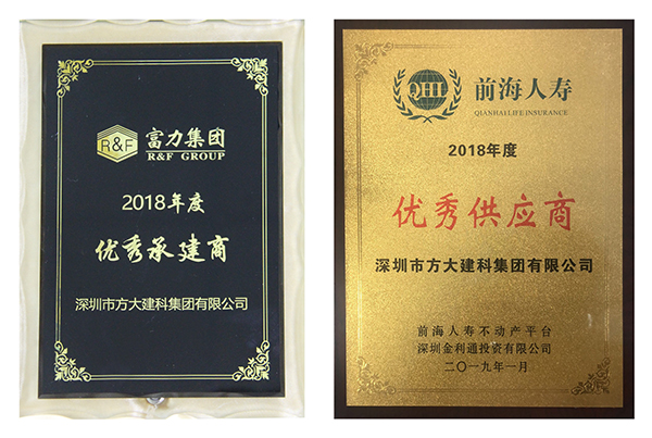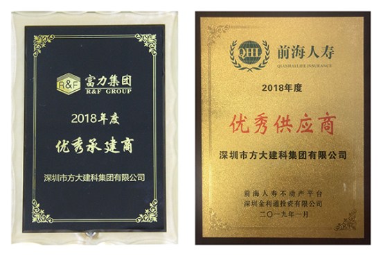 富力集團授予方大建科“2018年度優(yōu)秀承建商”、前海人壽授予方大建科“2018年度優(yōu)秀供應(yīng)商”、 萬科授予方大建科“最佳產(chǎn)品獎”、恒大海花島給方大建科一封感謝信。年末獲得的各大地產(chǎn)商授予的榮譽,涵蓋產(chǎn)品質(zhì)量、工程交期、客戶服務(wù)等多個方面,是業(yè)主對方大建科在2018年經(jīng)營管理及公司綜合實力的充分認可。