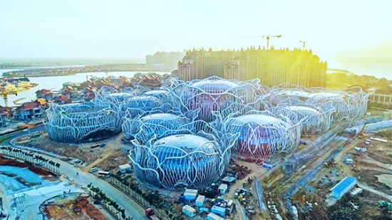海口·恒大海花島位于海南省儋州市,該島由三個既獨立又緊密相連的離岸式島嶼組成,從高空俯瞰,形狀猶如一朵盛開的鮮花。方大建科承建國際會議中心幕墻工程,由9個單獨的球型建筑組成,各球體幕墻采用了玻璃面板。項目團隊攻克異形幕墻設(shè)計施工、鋼結(jié)構(gòu)屋蓋跨度大以及施工作業(yè)面小等難題,與業(yè)主攜手并肩,互相激勵,不辭一切加快1#島項目建設(shè),為海花島的開業(yè)打下了堅實的基礎(chǔ)。