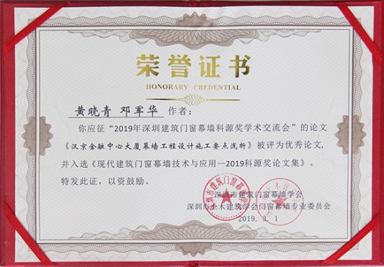 本次學術(shù)交流會上,方大建科發(fā)表了文林編寫的《豎向大線條插接型單元幕墻設(shè)計淺析》、黃曉青、鄧軍華編寫的《漢京金融中心大廈幕墻工程設(shè)計施工要點淺析》、楊全新編寫的《新型工業(yè)化幕墻的發(fā)展思路》共三篇論文并入選《現(xiàn)代建筑門窗幕墻技術(shù)與應(yīng)用》論文集,其中《豎向大線條插接型單元幕墻設(shè)計淺析》與《漢京金融中心大廈幕墻工程設(shè)計施工要點淺析》被評為優(yōu)秀論文。