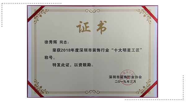 方大建科區(qū)域經(jīng)理張建輝——2018年度深圳市裝飾行業(yè)“十大優(yōu)秀項目經(jīng)理”