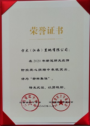 面對突如其來的新冠疫情,方大集團積極有序開展疫情防控工作的同時不忘承擔社會責任。2020年1月30日,方大集團旗下方大置地(江西)有限公司向江西省紅十字會捐款100萬元用于疫情防控。抗疫至今,方大集團向紅十字會捐款和為租戶減免租金等金額超過550萬元,并向社會捐贈5萬只防護口罩。
