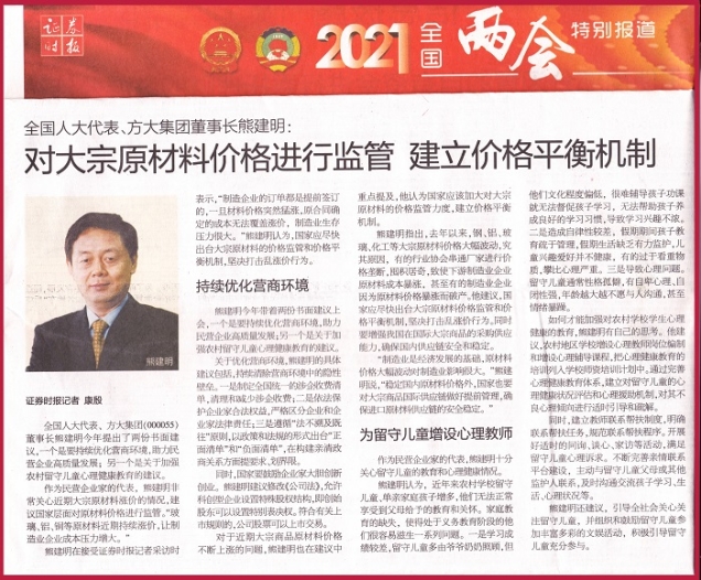 全國(guó)人大代表、方大集團(tuán)(000055)董事長(zhǎng)熊建明今年提出了兩份書面建議,一個(gè)是要持續(xù)優(yōu)化營(yíng)商環(huán)境,助力民營(yíng)企業(yè)高質(zhì)量發(fā)展;另一個(gè)是關(guān)于加強(qiáng)農(nóng)村留守兒童心理健康教育的建議。